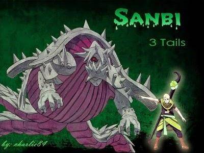 Yang ini berasal dari desa Kirigakure, dan nama bijuu ini adalah Isobu atau Sanbi si ekor tiga. Bijuu ini berjenis makhluk seperti kura-kura raksasa dengan cangkang baju karang, Jichuurikinya bernama Yagura si Mizukage keempat di Kirigakure. Kemampuan bijuu ini adalah angin dan sangat pandai dalam mengatur cakra yang berada dalam tubuhnya.